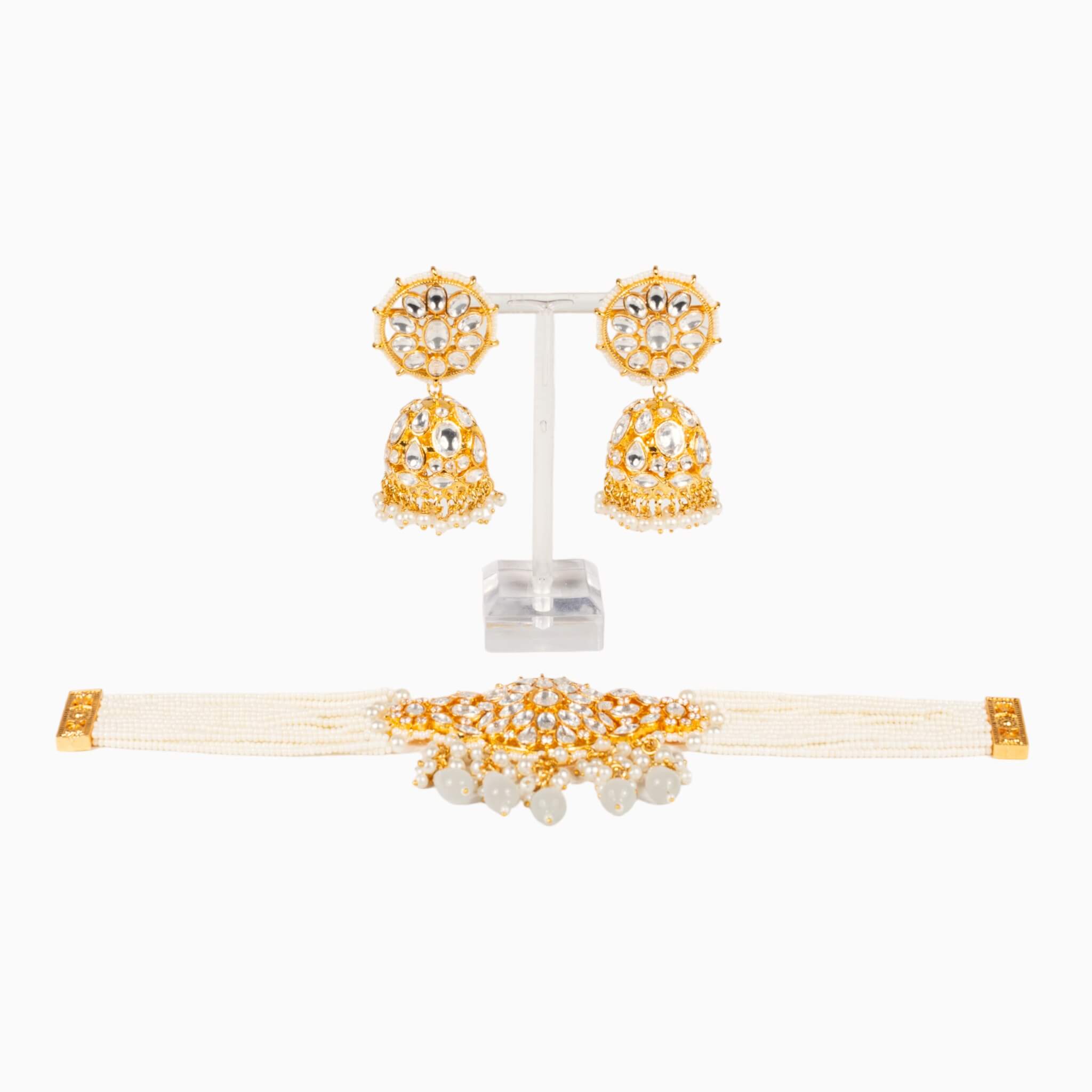 Look ravishing in this exquisite high quality Seerat Choker Set! Featuring Tyaani kundan that dazzles and sparkles to complete your traditional look. Make it your go-to accessory for any special occasion!