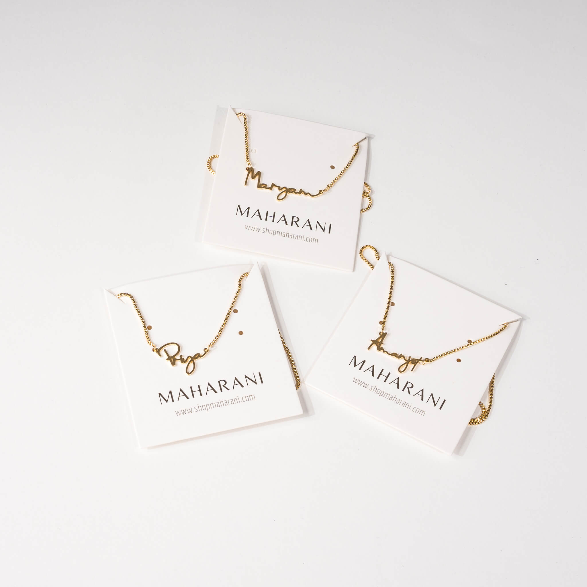 Our Custom Signature chain is the perfect way to express yourself. Crafted with 14k gold-plating and a high quality finish, you can create your own one-of-a-kind accessory with a personalized name of your choice. Show the world who you are with our Custom Signature chain.