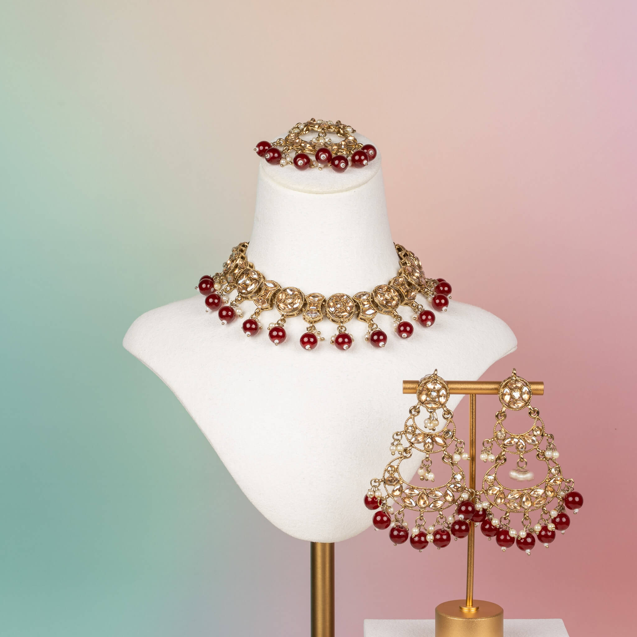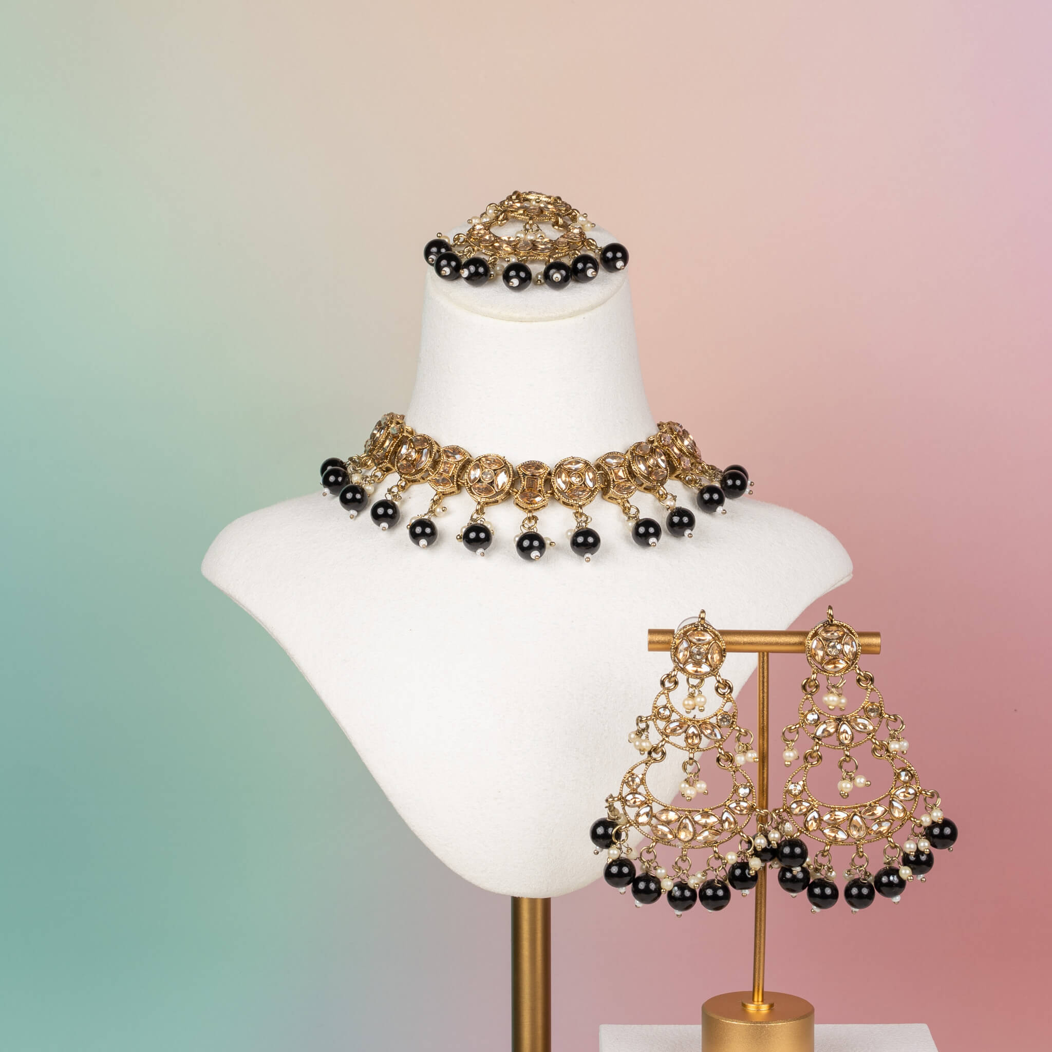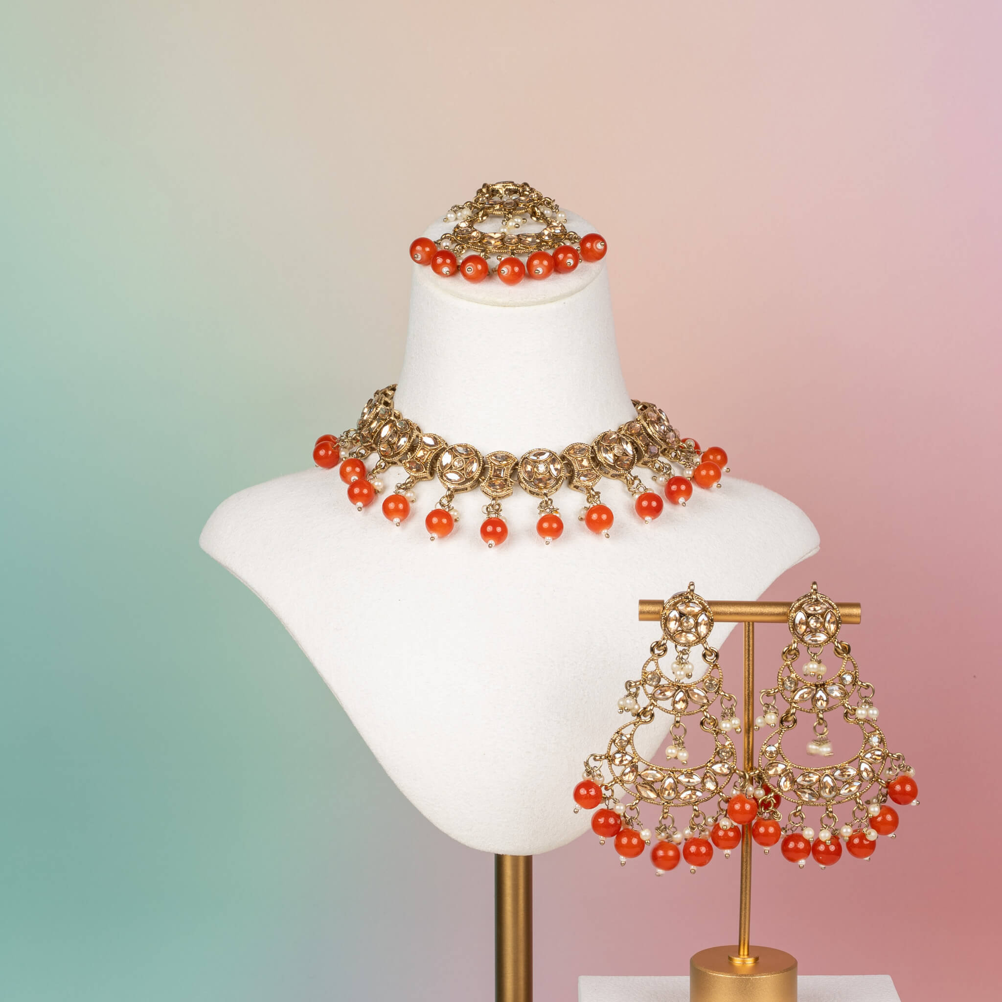 • 3-piece set: necklace, earrings & tikka