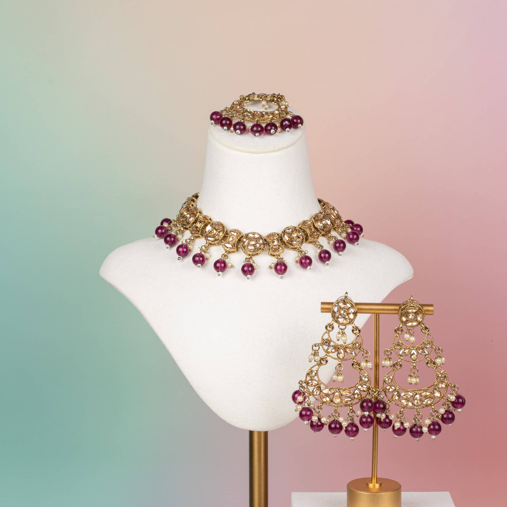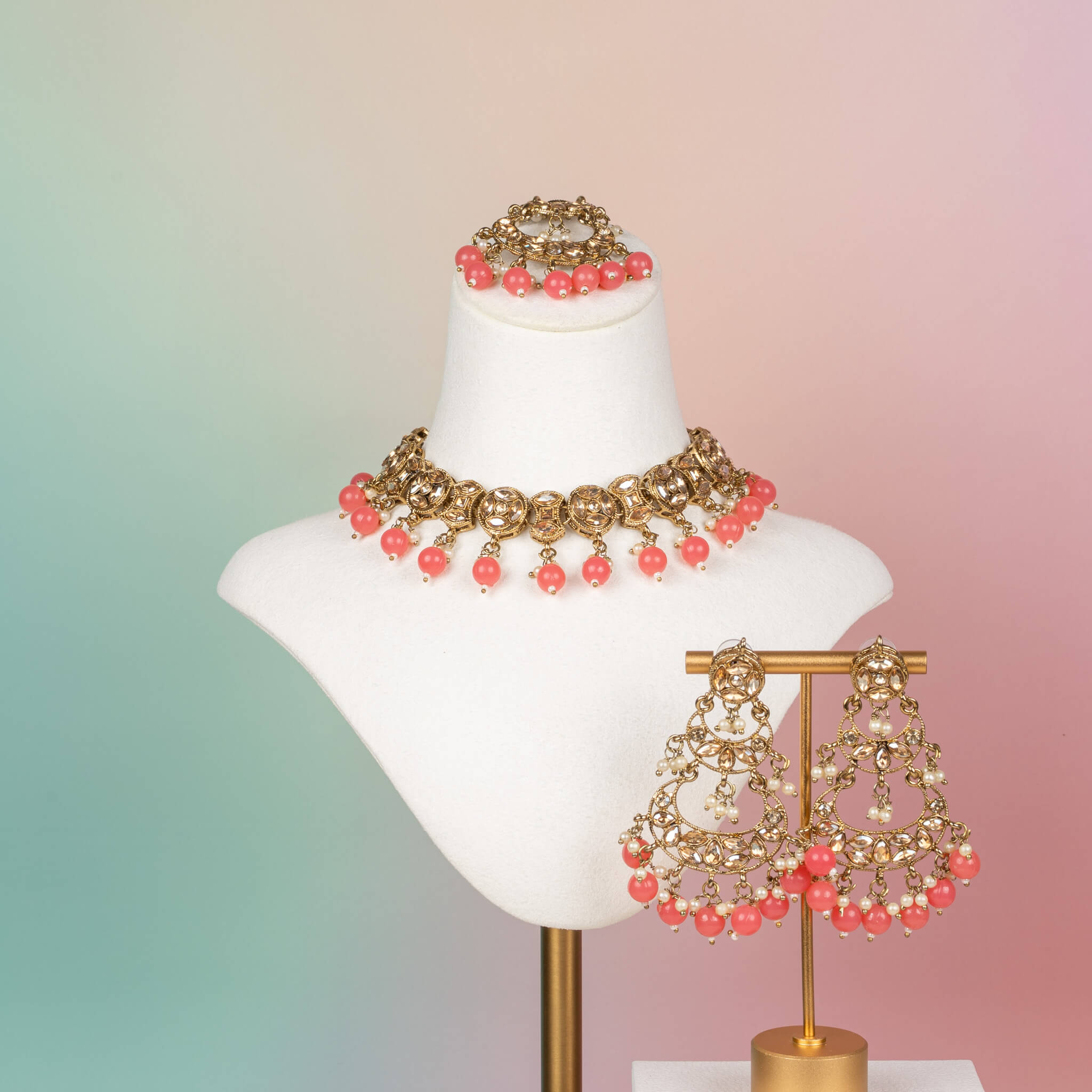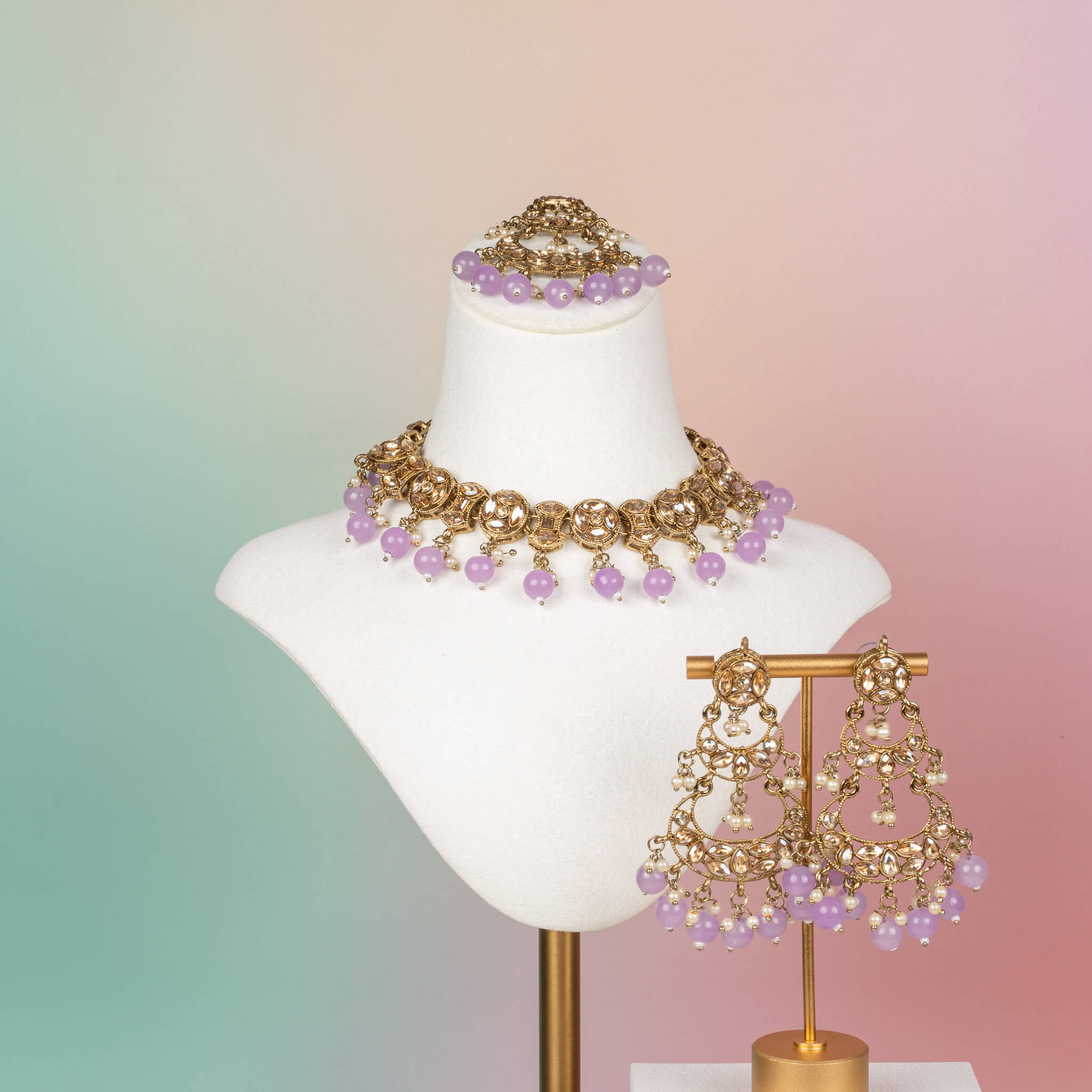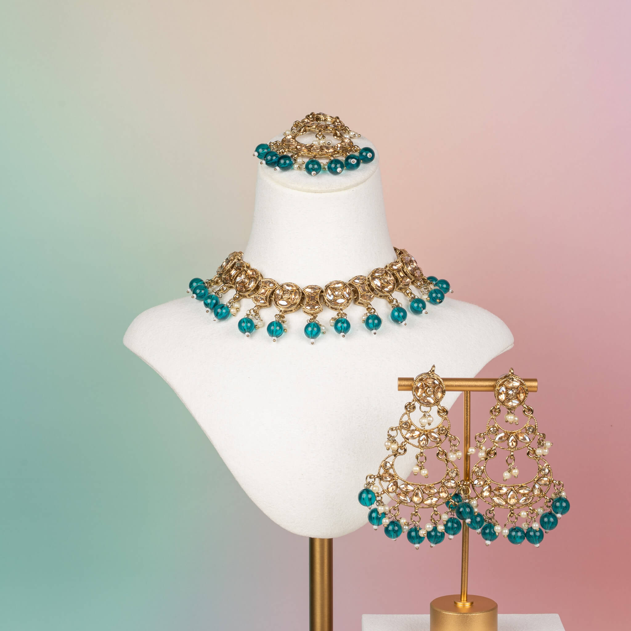 • 3-piece set: necklace, earrings & tikka